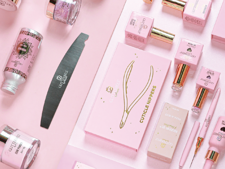 Discover the magic of Glitterbels - richly pigmented acrylics powders, hema-free gels and pro tools for stunning salon sets.