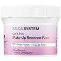 Salon System Lash & Brow Makeup Remover Pads (50 Pack) are oil-free pads infused with Rose Water that effectively prepare lashes and brows for treatments.