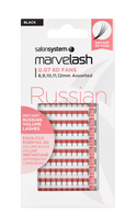 Salon System Marvelash Russian 0.07 6D Fans Assorted Lashes Black are pre-made Russian-style fans for ultra-quick application and instant volume. Containing an assortment of individual lash lengths from 8mm to 12mm, these synthetic hair lashes allow for the creation of a multitude of unique eyelash looks.